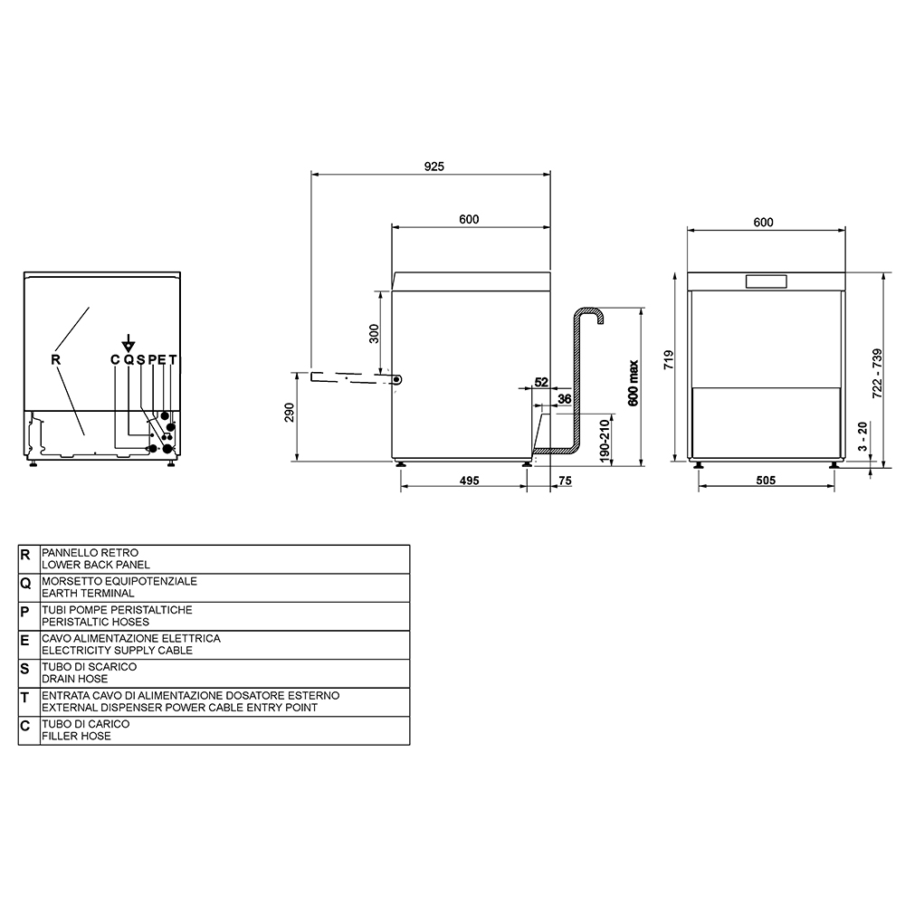 Košara za skodelice, dovodna cev, odvodna cev |
